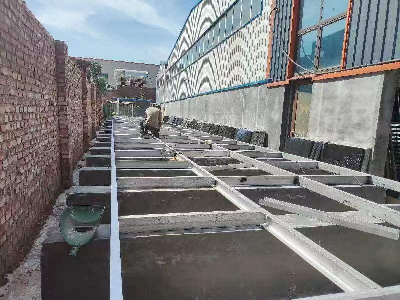 2、土建施工時先做好支墩,水箱四周及箱底單元板塊之間的連接縫要坐落在支墩上。
