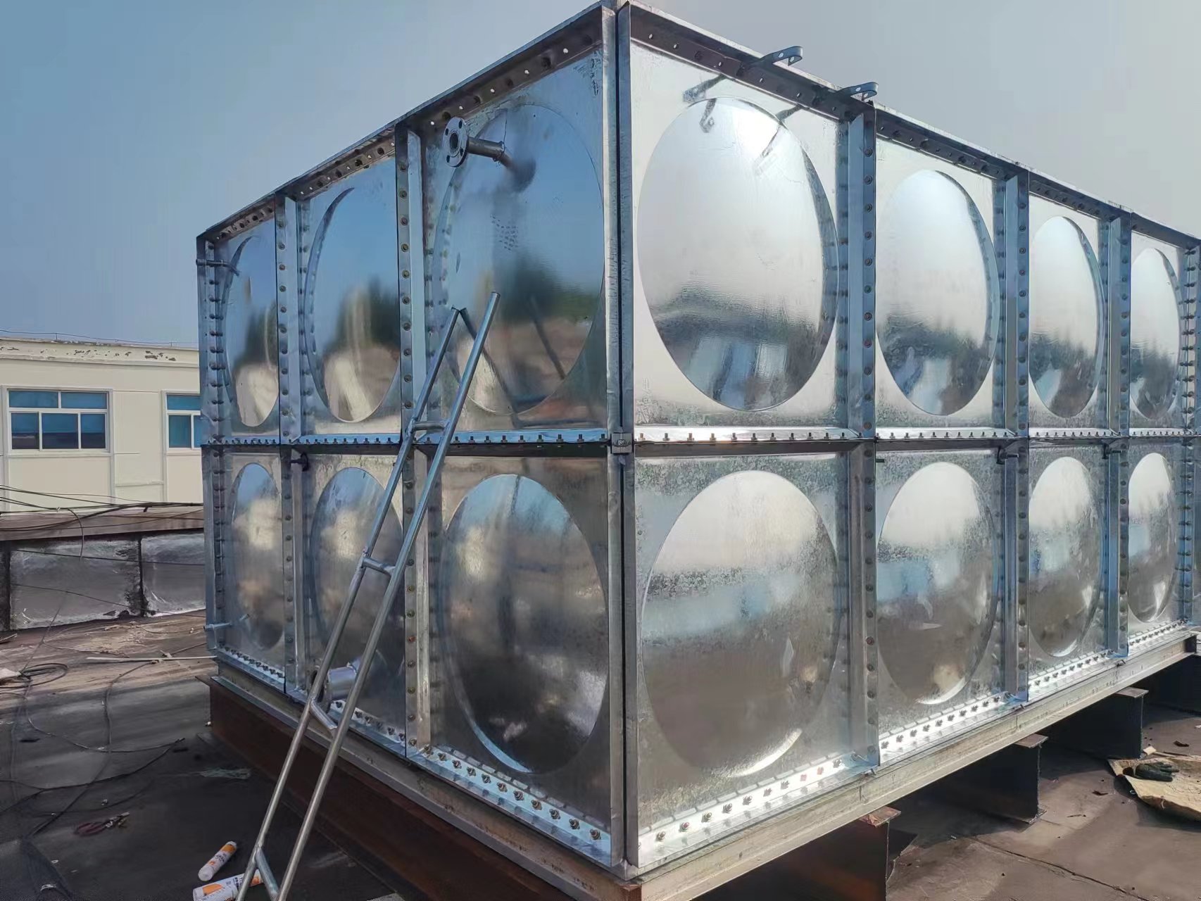 騰翔裝配式鍍鋅鋼板水箱采用Q235鋼板,沖壓形成1000×1000和1000×500的標準塊,周邊鉆孔,經鍍鋅處理,現場進行組裝,組裝時標準塊之間硅膠密封,螺栓連接。鍍鋅保溫水箱設計:為了方便使用和檢修,鍍鋅水箱的進水管、出水管及溢流管的管徑、位置由設計人性化,水箱四周設有不少于500mm的通道,箱底及箱頂不少于500mm。安裝時箱底四周及箱底標準快之間的連接縫隙要座落在支座上。鍍鋅保溫水箱品質:在安裝完畢后都進行滿水試驗:水箱安裝后關閉出水管和泄水管,打開進水管,邊放水邊檢看,放滿為止,經2-3小時不滲水為合格。