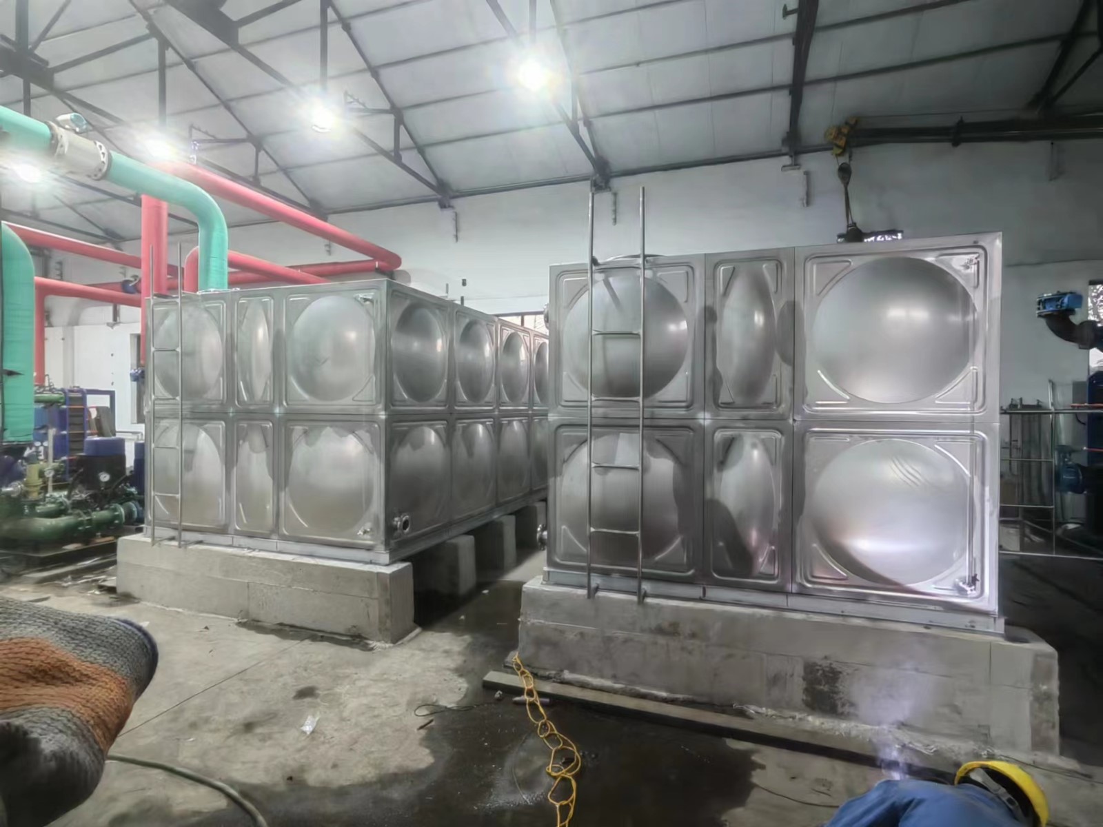 我廠承接的河北省唐山市開灤林西礦業回臺換熱站2臺304不銹鋼焊接水箱已經安裝試水完成。不銹鋼水箱具有重量輕、不銹蝕、不滲漏、性不銹鋼水箱、水質好、使用范圍廣、使用壽命長、外形美觀、安裝方便、清洗維修簡便、適應性強等特點。并且任意組合,造型,容積可滿足任何設計要求。