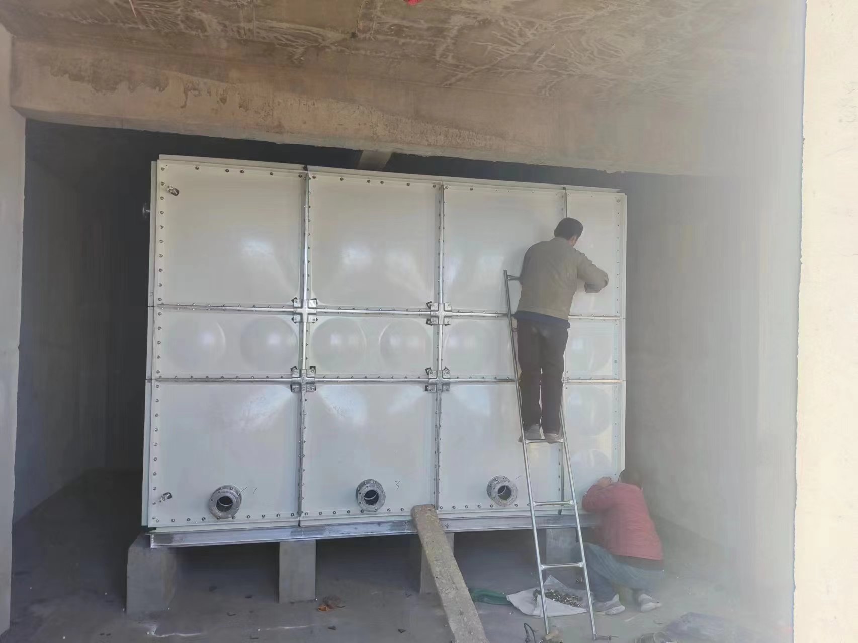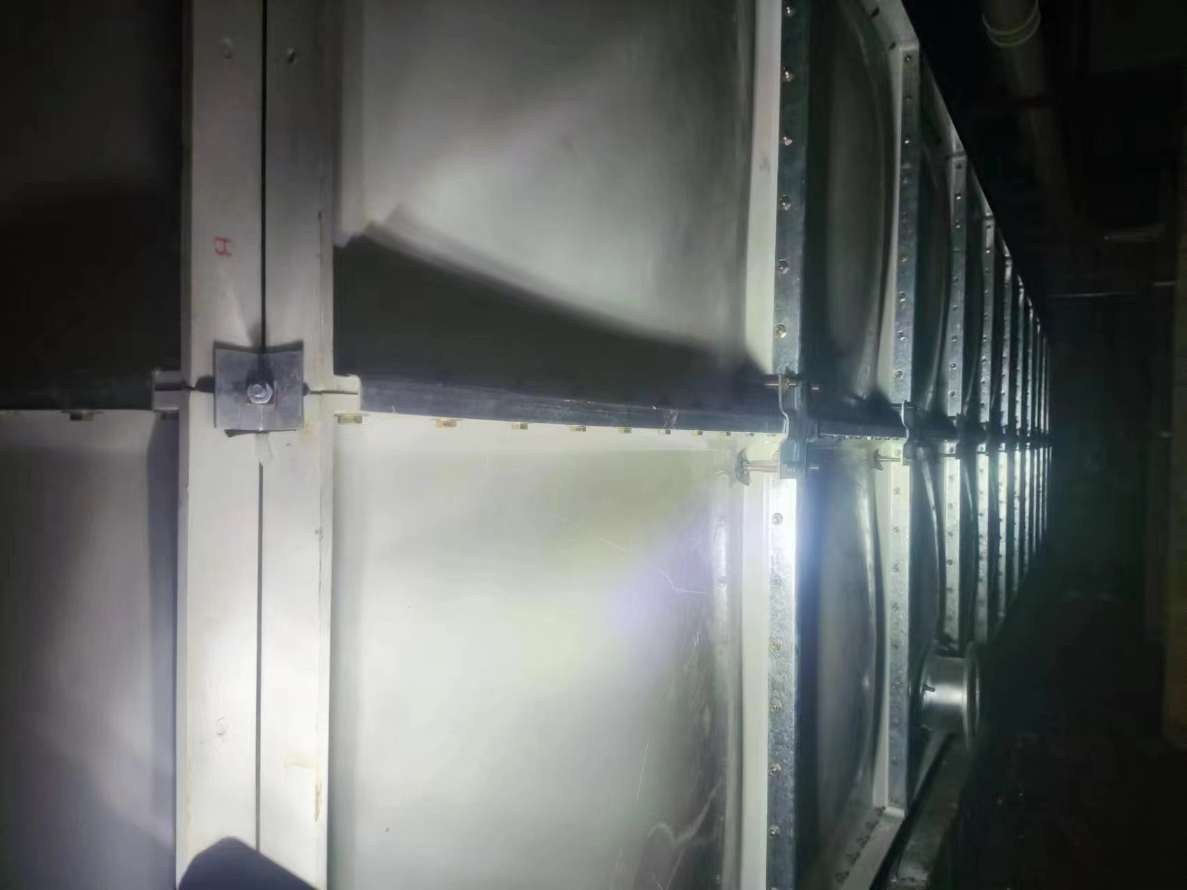 我司承接的內(nèi)蒙古巴彥淖爾市瑞京名第地下室及樓頂消防水箱項目,已安裝試水完畢。SMC組合式玻璃鋼水箱是由整體優(yōu)質(zhì)的SMC水箱板拼裝而成。其特點是采用不飽和樹脂,因此水質(zhì)好,清潔無污染;具有強度高,重量輕,耐腐蝕,外型美觀,使用壽命長,保養(yǎng)管理方便等特點。
