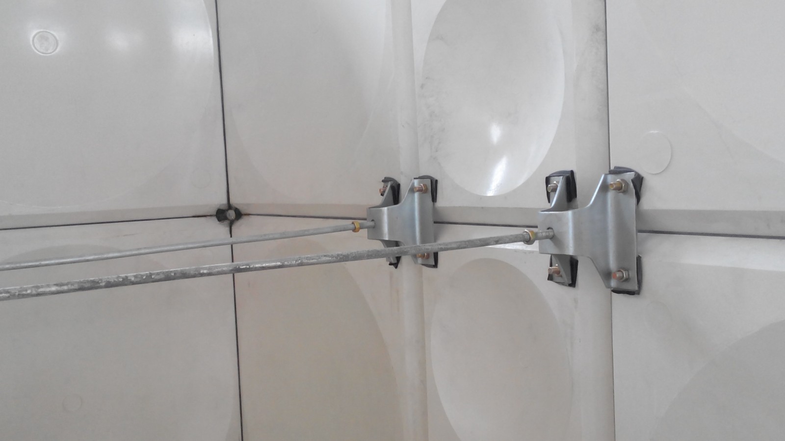 其次安裝各邦,根據(jù)水箱單板上的印號及說明,找出水箱邦體的各層邦號,并且預先分開,用螺栓組裝邦體。把水箱板立好,找正,使邦板與底邦形成90度夾角,并且加密封膠條,緊固螺栓。然后安裝內(nèi)拉筋,內(nèi)拉筋根據(jù)水箱尺寸,找對拉筋的數(shù)量及長度。用拉筋板測量拉筋對絲緊固部位,畫印、打眼、上對絲緊固,使拉筋平整的與水箱箱體保持平衡。如箱體與拉筋之間有較大誤差,可通過調(diào)整螺栓緊固程度來調(diào)整誤差大小,直到把誤差調(diào)整到合適為止。