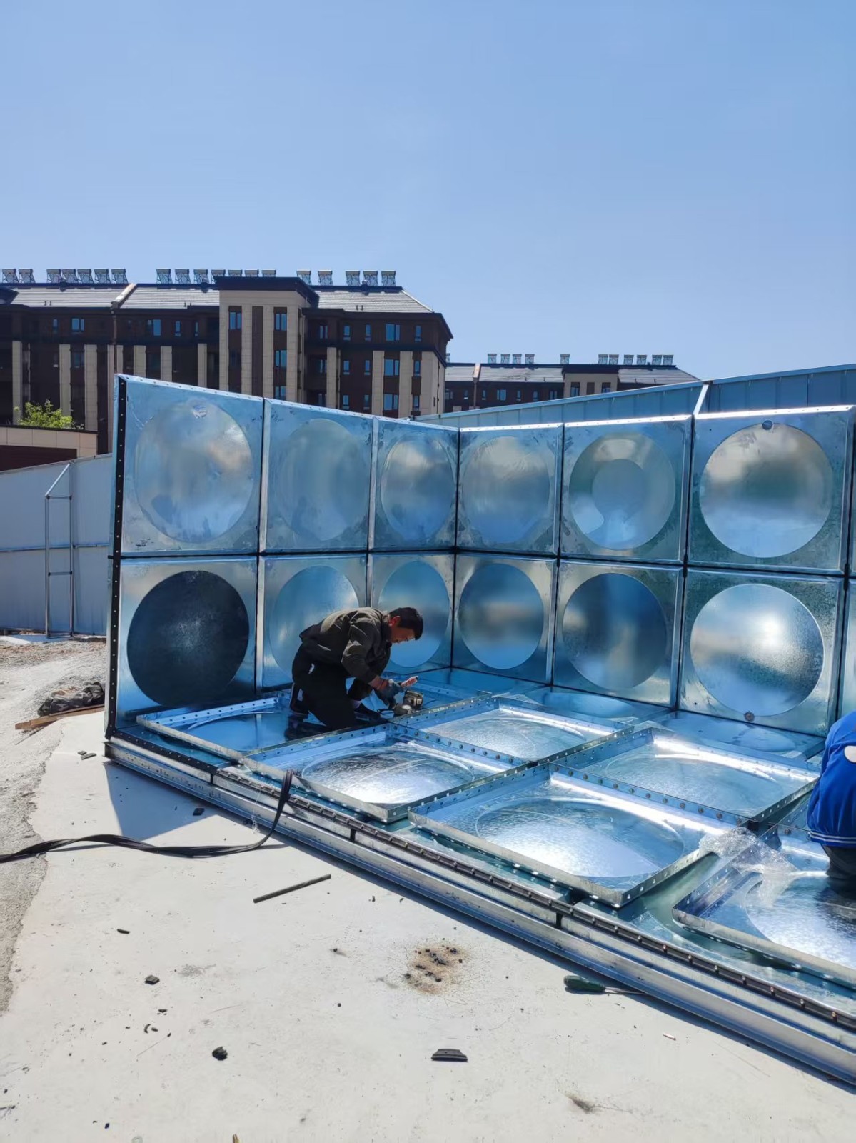 騰翔裝配式鍍鋅鋼板水箱采用Q235鋼板,沖壓形成1000×1000和1000×500的標準塊,周邊鉆孔,經鍍鋅處理,現場進行組裝,組裝時標準塊之間硅膠密封,螺栓連接。鍍鋅保溫水箱設計:為了方便使用和檢修,鍍鋅水箱的進水管、出水管及溢流管的管徑、位置由設計人性化,水箱四周設有不少于500mm的通道,箱底及箱頂不少于500mm。安裝時箱底四周及箱底標準快之間的連接縫隙要座落在支座上。鍍鋅保溫水箱品質:在安裝完畢后都進行滿水試驗:水箱安裝后關閉出水管和泄水管,打開進水管,邊放水邊檢看,放滿為止,經2-3小時不滲水為合格。